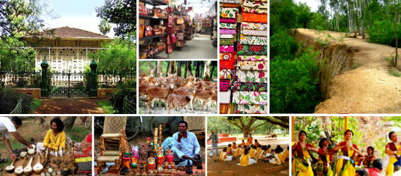 Enjoy tranquil lush green rural landscape, red soil, bright blue sky in the abode of peace, Shantiniketan. The place is naturally attractive for its colorful horizon and picturesque surroundings. The area is also adorned by splendid sculptures, frescoes, murals, paintings and fairytale gardens.